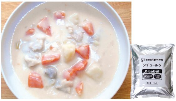 「くるみ・小麦・そば・卵・乳・落花生・大豆」不使用、「香料・着色料」無添加の商品ブランド「A-Label」の業務用シチュールゥです。溶けやすい粉末状です。具材をかえていろいろな料理にご使用いただけます。