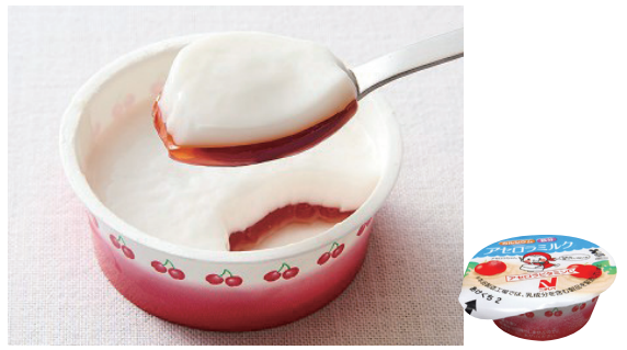 クリーミーでなめらかな豆乳ベースのゼリーと色あざやかでほんのり甘酸っぱいアセロラベースが2層になった、甘味と酸味が程よいデザートです。牛乳を使わずに美味しく仕上げています。お子様に不足しがちなカルシウムと鉄分を加えました。Ca:140mg/個、Fe:3.52mg/個