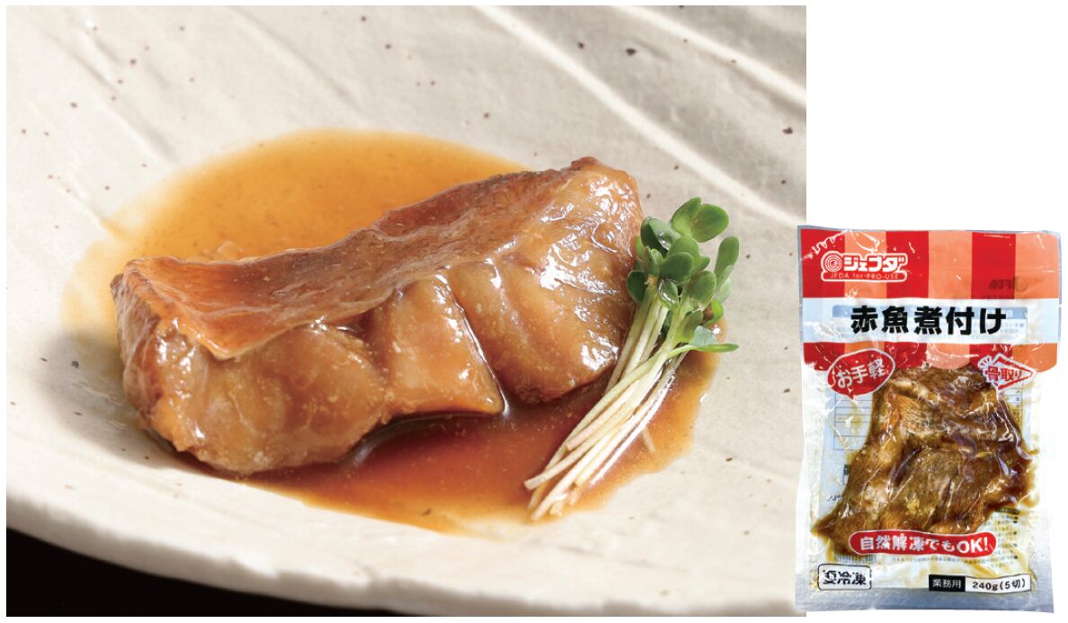 赤魚から骨を丁寧に取り除き、煮付けにしました。解凍するだけでお召し上がりいただけます。