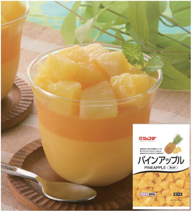 芳醇な甘さと香りが特徴のパインを食べやすいサイズにカットしました。生のパインアップルを急速凍結しているので、風味や色味を保持しています。必要な分だけそのままスグに使えます。カットサイズ: 約1.5 ~ 3.5cm、1 個:7 ~ 10g、1PC 当たり55 ± 10 個入り( 目安)