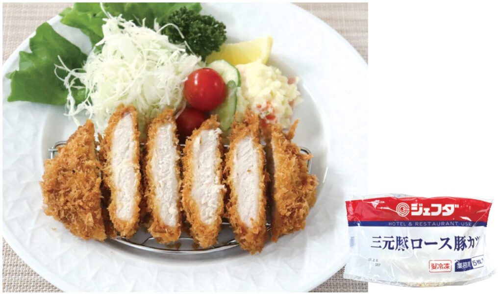 柔らかな肉質が特徴のアメリカ産三元豚を使用。パン粉の剣立ちに拘りました。中食・外食等幅広い業態でご使用できます。