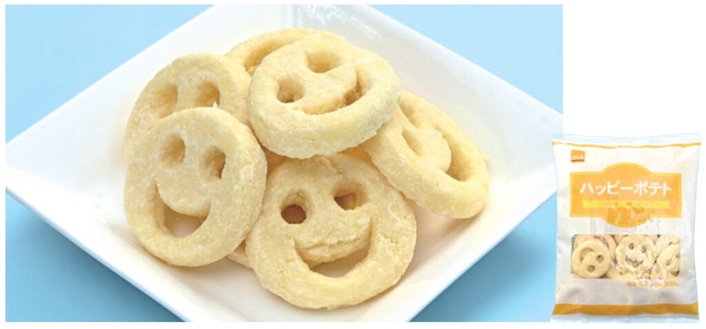 キッズ、テイクアウトに!スマイルフェイスを模ったハッピーポテト。15g/ 個( 目安)