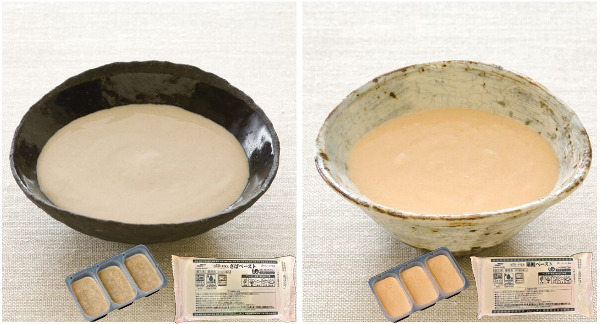 風味をいかしたUDF: かまなくてよい、均質でなめらかな主菜用のペーストです。魚の代わりの素材とて様々な料理にお使いいただけます。タレをかける事でアレンジが広がります。調理後にかき混ぜることでなめらかになりますので、召し上がる方の状態に合わせて調整してください。