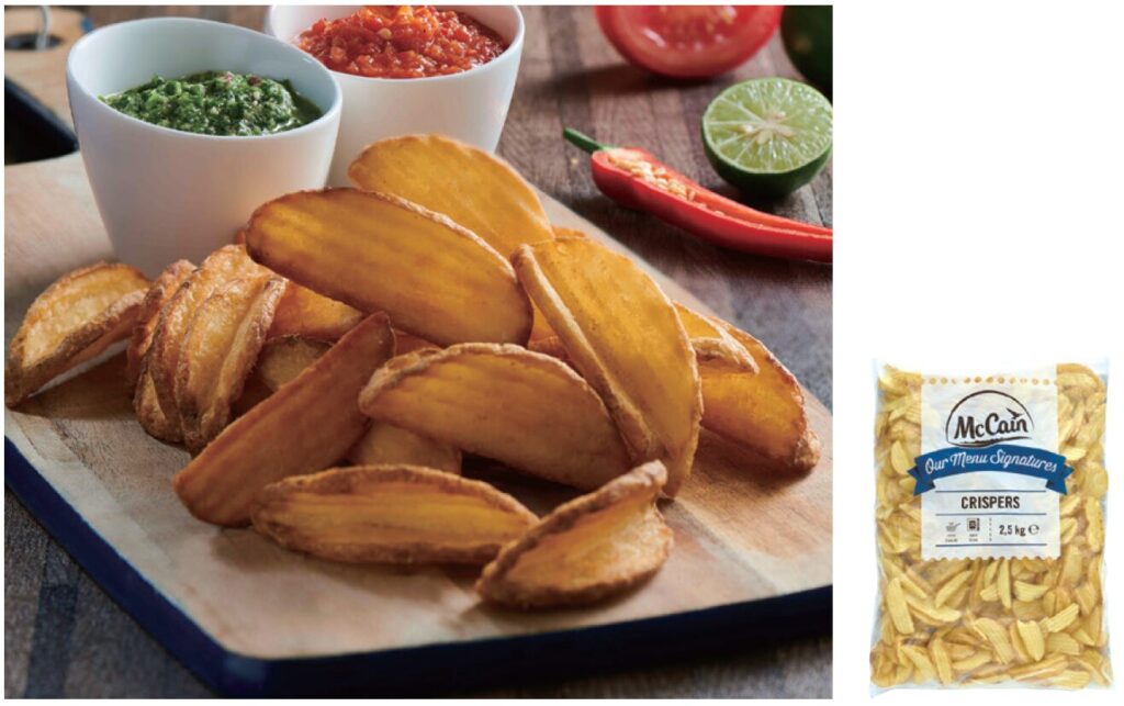 塩味付きでクリスピーな食感が楽しめる皮付きV 字ポテト。ディップやトッピングと合わせやすい形状でオリジナルメニューも作りやすい商品です。
