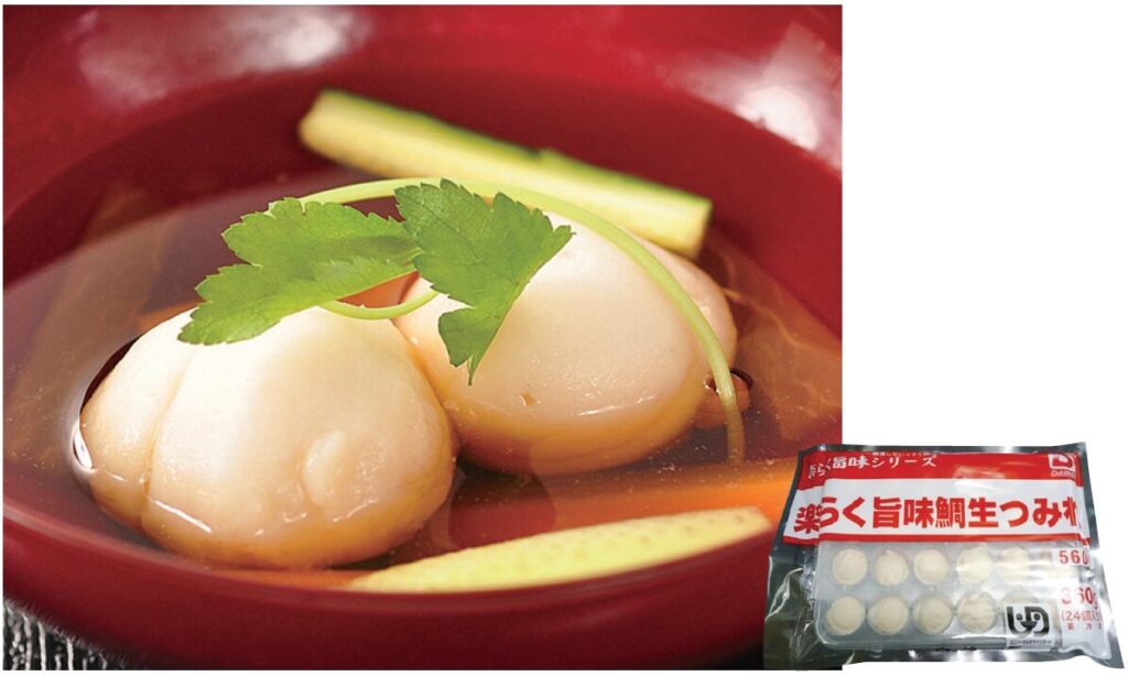 日本近海で獲れた鯛の落とし身を使用し、魚の生臭さが少ない冷めても柔らかいつみれに仕立てました。UDF:歯ぐきでつぶせる