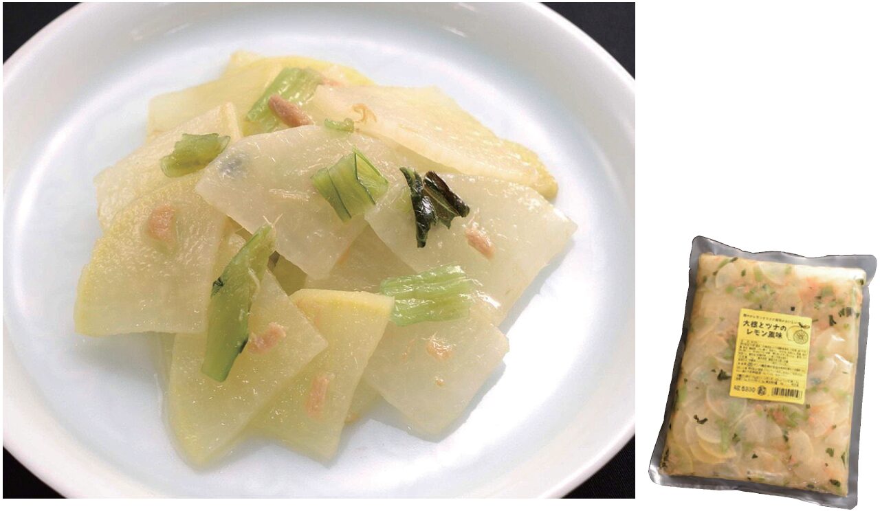 大根・小松菜のサラダ。爽やかなレモンとツナの旨味が後引くおいしさです。