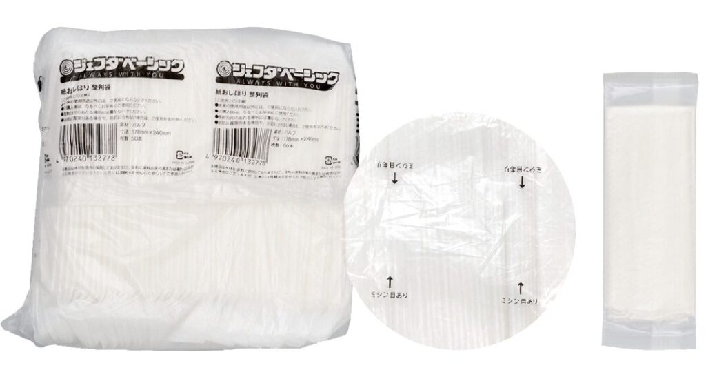 綺麗に整列して袋に入っている紙おしぼりです。少量50枚で整列して包装されているため、省スペース化を実現!コストの観点から多くの飲食チェーンで紙エンボスタイプを採用!やわらかくて給水性も高く、使いやすい仕様で安全・安心です。