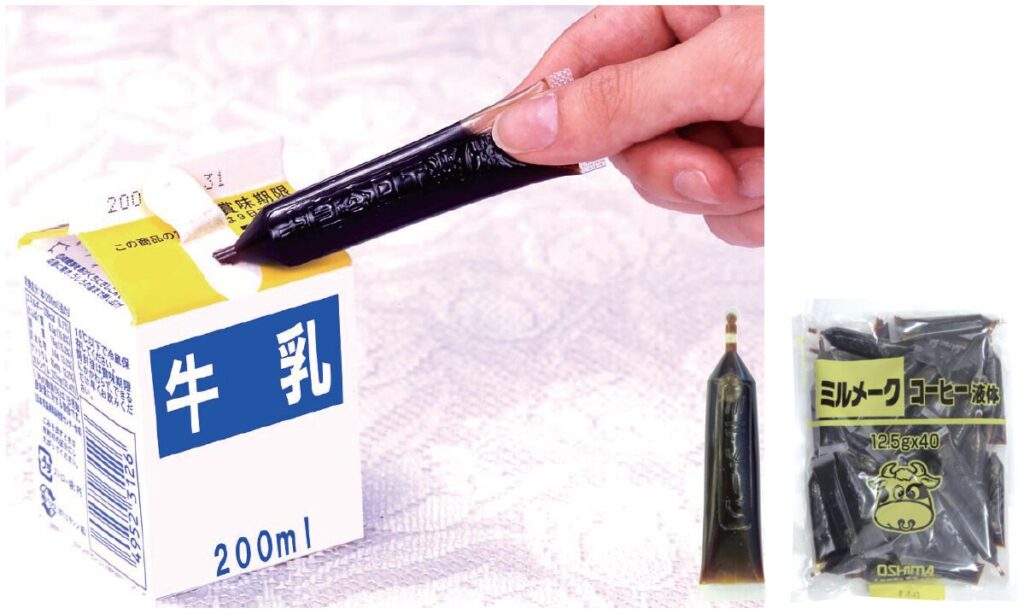 全国の学校給食で多くの子供たちに飲まれ、牛乳嫌いのお子さまにも大好評。パック牛乳にも使いやすい液体タイプのミルメークです。200ml の牛乳に1本(12.5g)溶かすとおいしいコーヒー牛乳ができあがります。