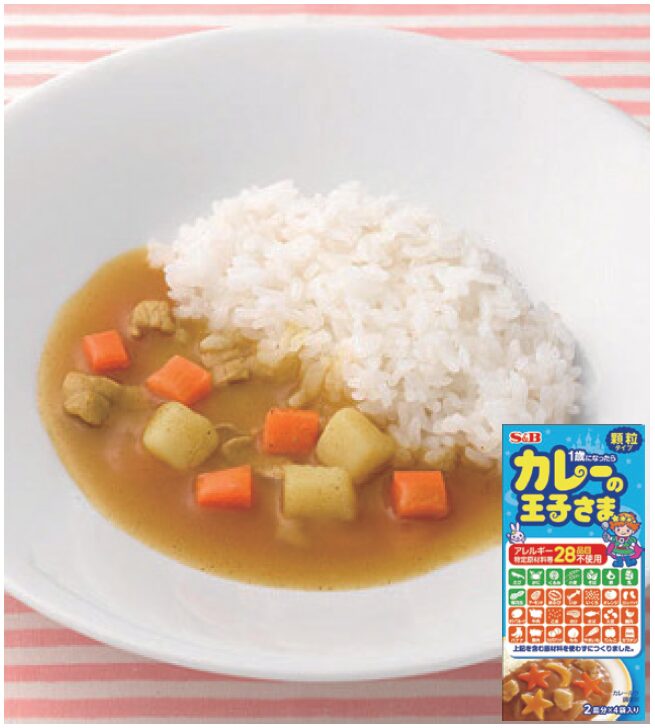 5種類の野菜(かぼちゃ、さつまいも、じゃがいも、白菜、玉ねぎ)の旨みで仕上げた、刺激が少ない、まろやかで優しい味わいの幼児向けカレーです。(アレルギー特定原材料等28 品目不使目)