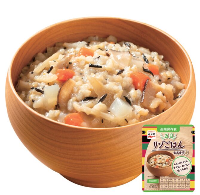 あたためなくても、開封してそのままおいしく食べられます。水が飲めない状況でも、食べやすい柔らかさです。健康感のある玄米を使用しています。玉ねぎ、人参、ごぼう、たけのこ、椎茸、こんにゃく、ひじきの具材入りです。鰹と昆布を使用した和風ごはんです。あ