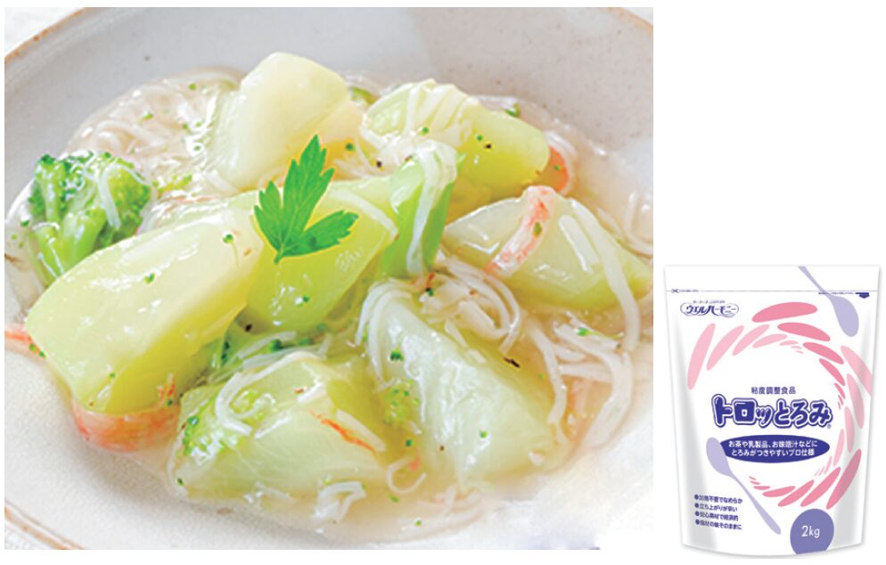 お茶や乳製品、味噌汁などにとろみがつきやすく、優れたコストパフォーマンスを実現したプロ仕様のとろみ剤です。とろみの立ち上がりが早く、調理の時間が短縮できます。