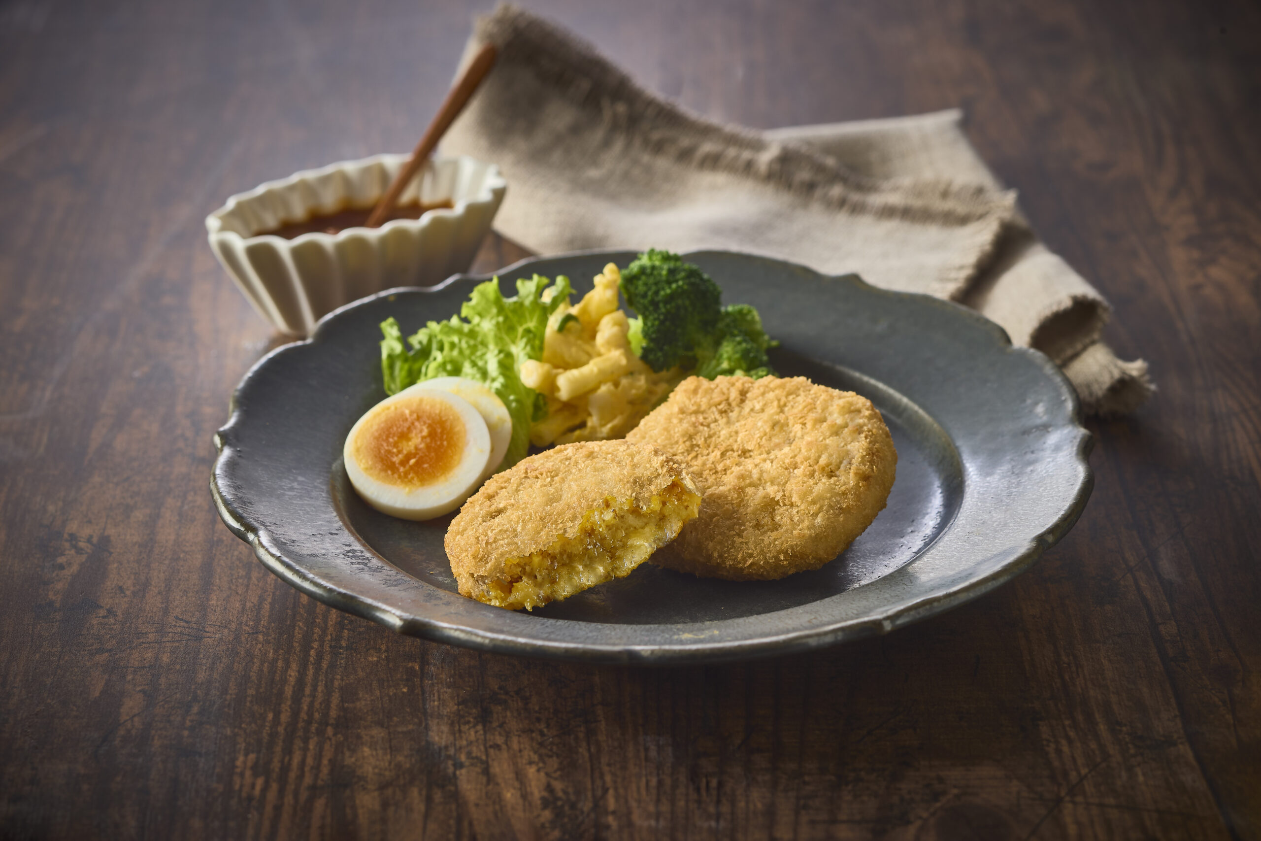 2006年、熊本市内の小・中学生の発案したアイデアをもとにカレー味の馬肉入りコロッケ「馬か!コロッケ」として弊社で製品開発を行いました。